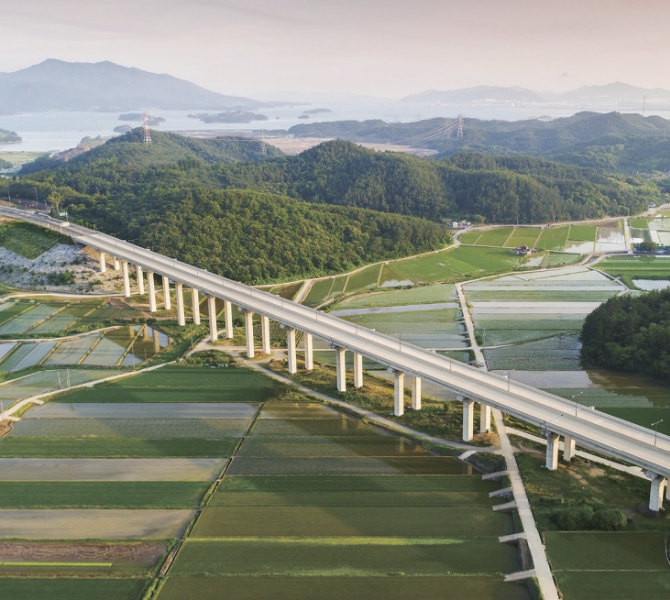 Our past projects have accelerated inter-region and inter-industry synergies. The projects are National road construction at Gohyeon-Hadong IC Section (#1), improvement of the traffic congestion section at Gwacheon-Bongdam Expressway, and construction of the entrance to Daema E-vehicle Industrial Complex.