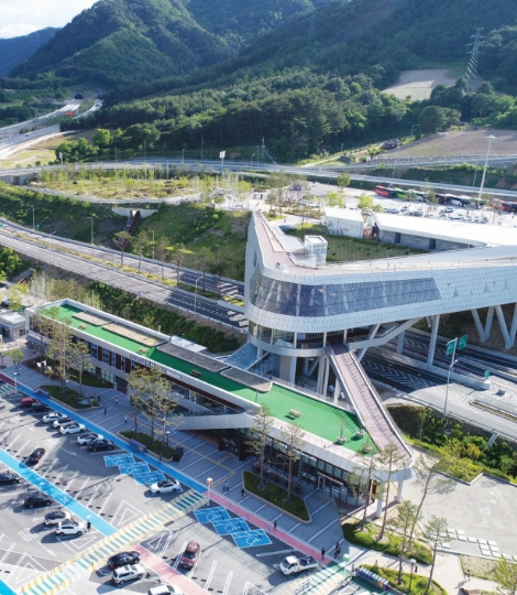 Distinguished from other rest areas, Naerincheon Rest Area is built to harmonize with the surrounding environment.