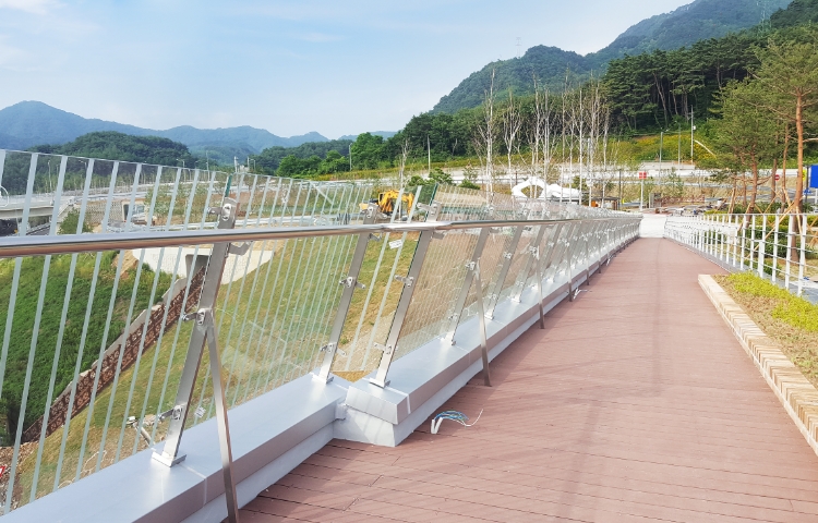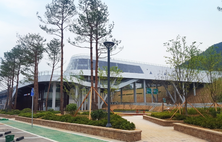Naerincheon Rest Area was created as an eco-friendly facility to harmonize with the beautiful surroundings. The Naerincheon Rest Area serves as a landmark in Inje, designed to promote the local environment with appealing points, including the eco-wetland trail, observatory, exhibition hall, and a local produce market.