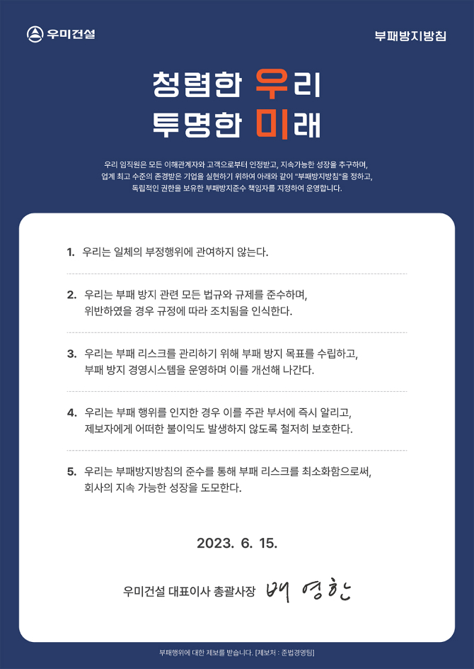 "In 2023, Woomi revised its anti-corruption policy with greater transparency to establish principles and practices for preventing corruption. The anti-corruption policy is uniformly applied to all employees, and certain aspects are also extended to third parties, including business partners, with whom the company engages in transactions."