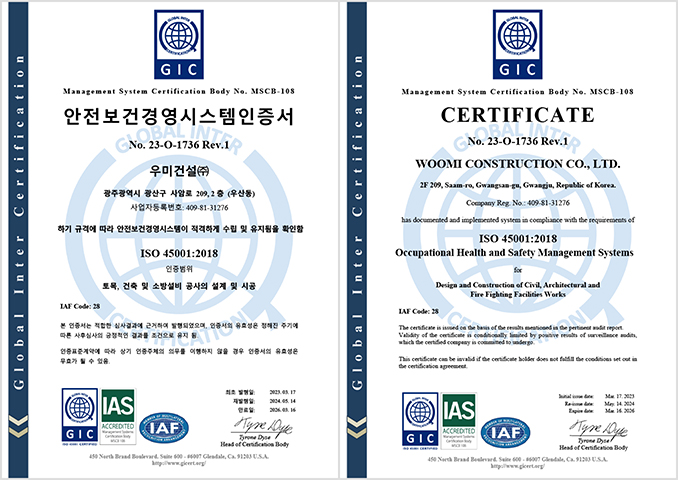 | Certification Range | Woomi Construction Co., Ltd. Place of business |