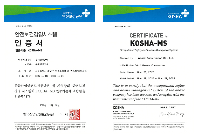 In 2022, Woomi acquired a KOSHA-MS Certificiate established by (Korea